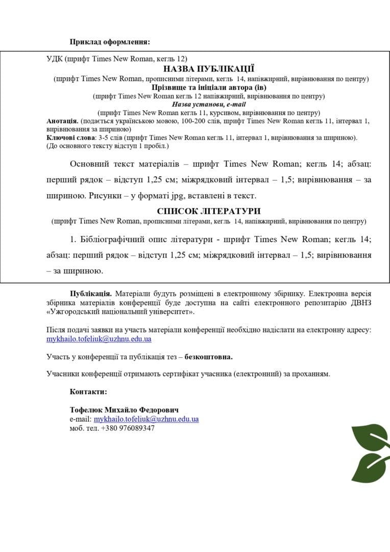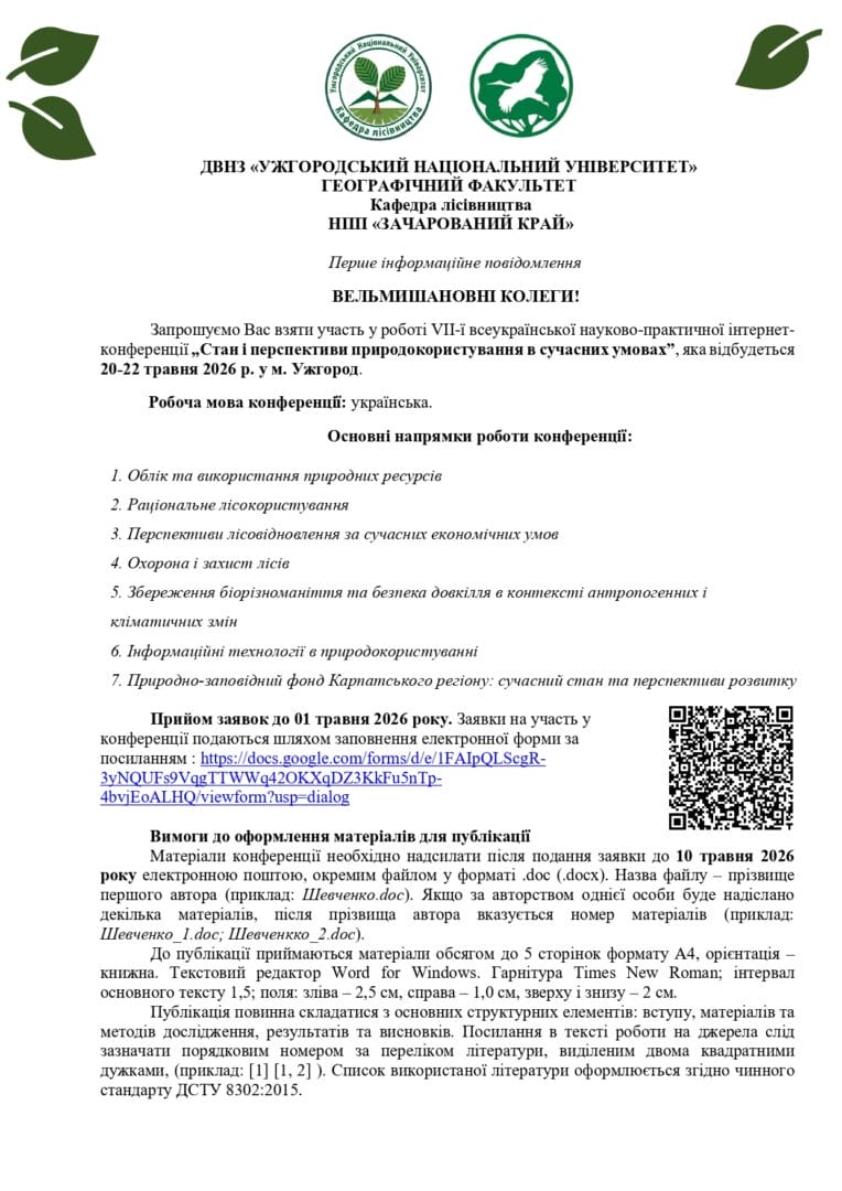 конференції подаються шляхом заповнення електронної форми за посиланням нижче, або за QR кодом в інформаційному повідомленні: https://docs.google.com/.../1FAIpQLScgR3yNQUF.../viewform...
